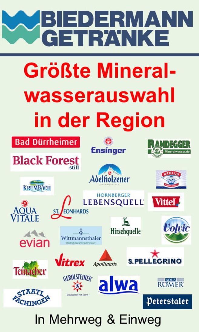 In unserem Sortiment finden Sie eine Vielzahl von Wässern verschiedener Mineralbrunnen. Unser Wassersortiment umfasst dabei neben den bekannten großen Marken ebenso regionale Hersteller und natürlich Heilwässer unterschiedlichen Ursprungs. Gerne beraten wir Sie auch bezüglich Inhalts- bzw. Mineralstoffe der jeweiligen Produkte. Sprechen Sie uns einfach an.