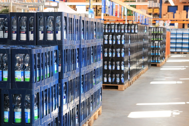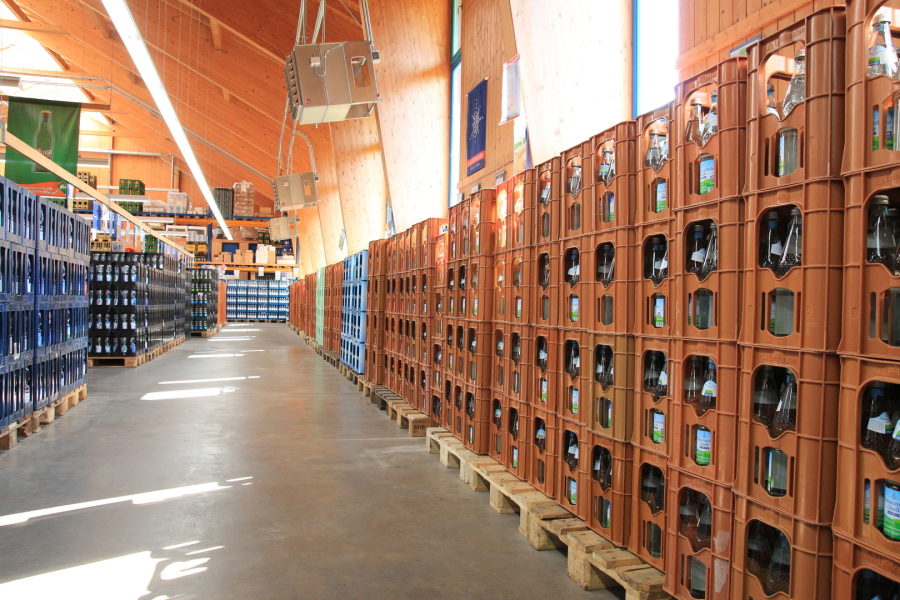 Wir führen verschiedene Flaschengrößen von ganz klein (0,25l) bis ganz groß (1,5l.) und natürlich in Glas- und PET-Flaschen.